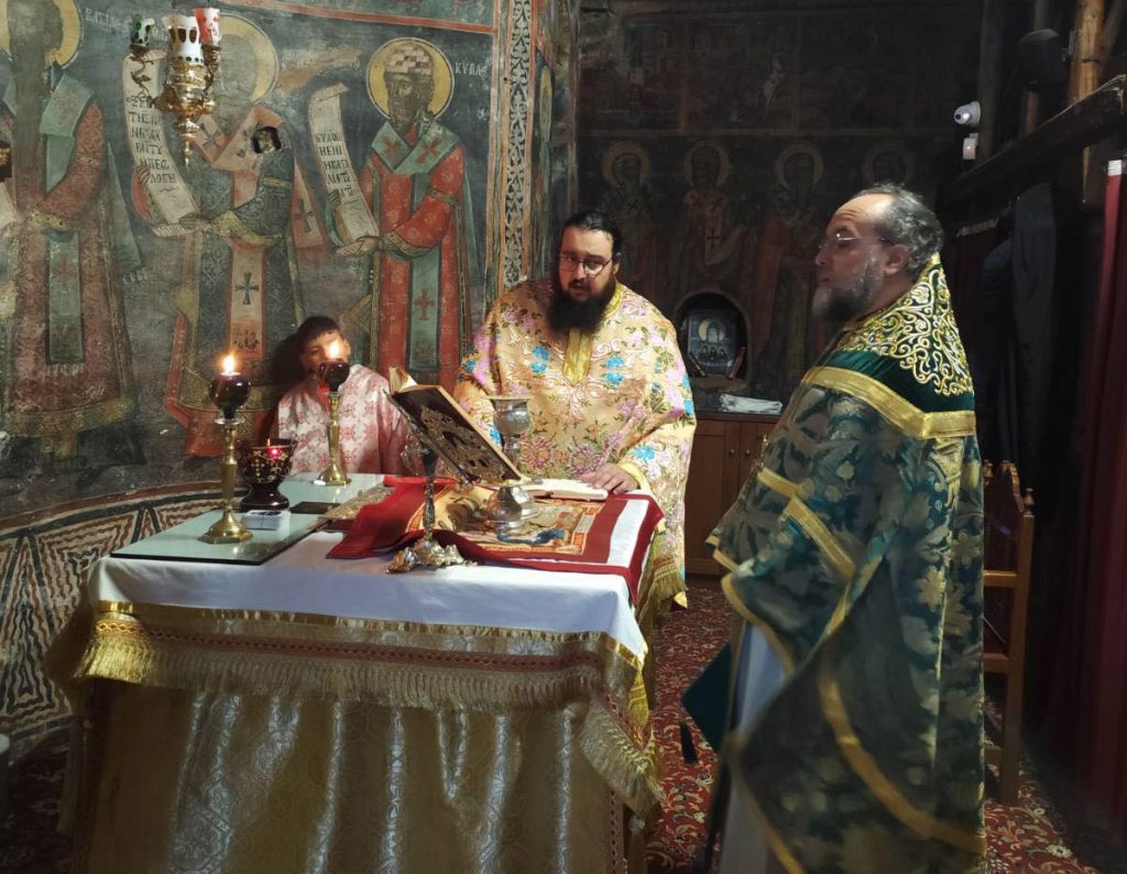 Ο Γέρων Νεκτάριος ιερούργησε χθες, ανήμερα της εορτής του, στο Καθολικό της Μονής, προσευχόμενος περί υγείας και ειρήνευσης του σύμπαντος κόσμου.