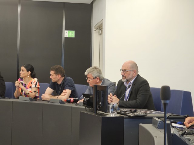 Με αφορμή την παρουσία του Επιτρόπου επί των Μεταφορών Απόστολου Τζιτζικώστα στην Ολομέλεια της Ευρωβουλής στο Στρασβούργο η ΝΙΚΗ και ο ευρωβουλευτής της Νίκος Αναδιώτης διοργάνωσαν ειδική εκδήλωση για τα Τέμπη.