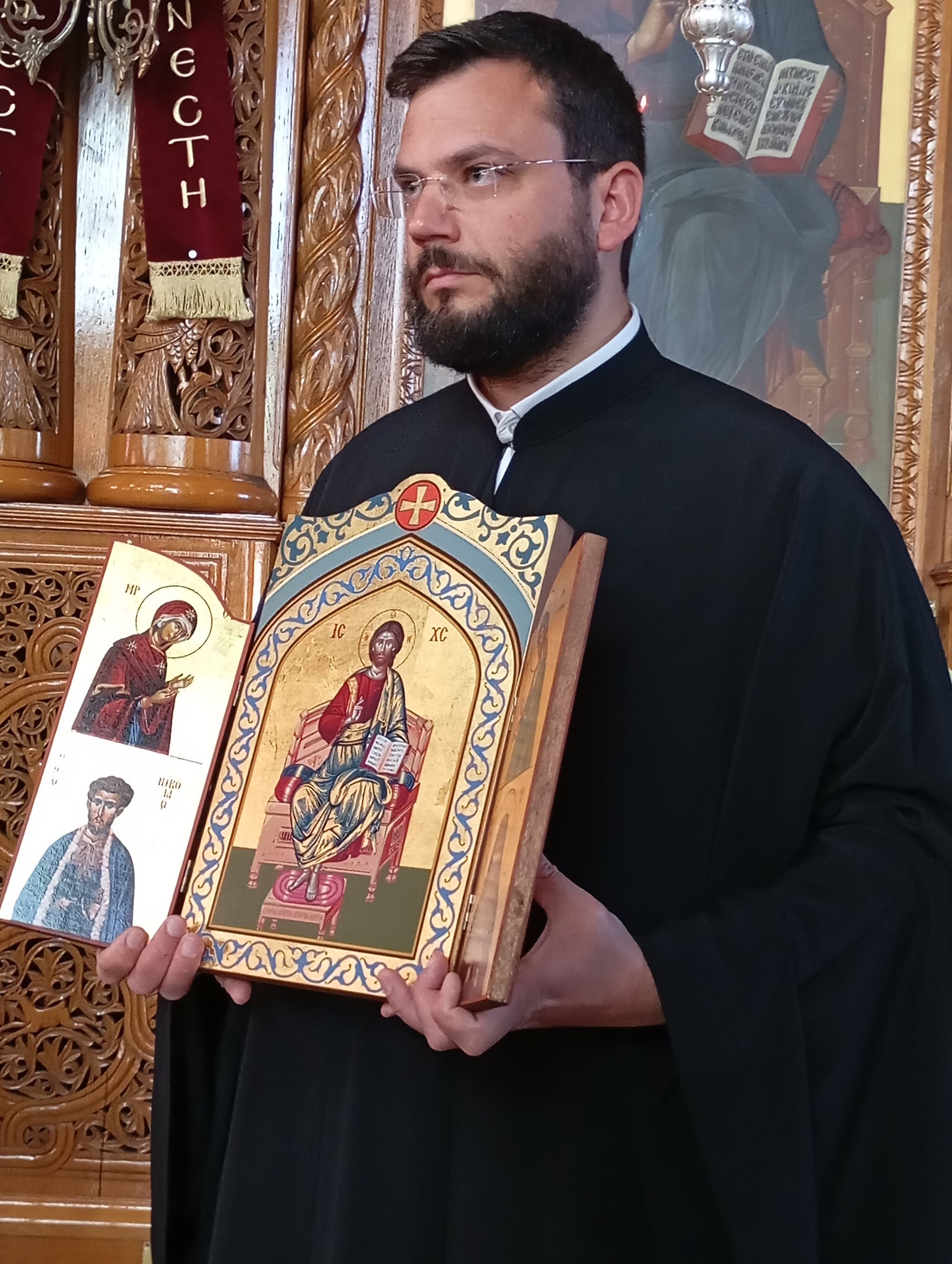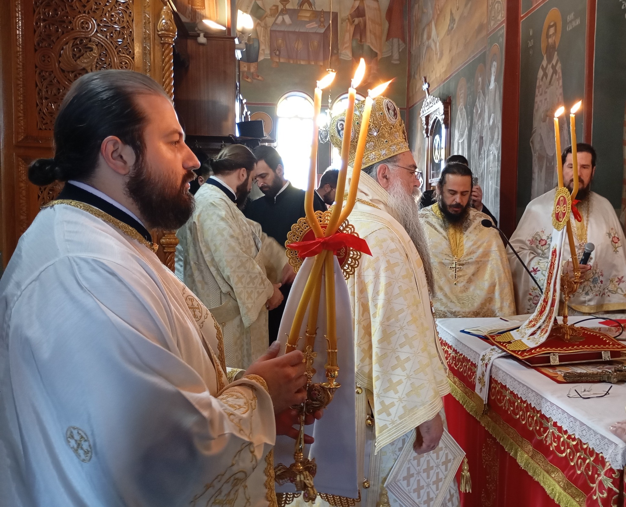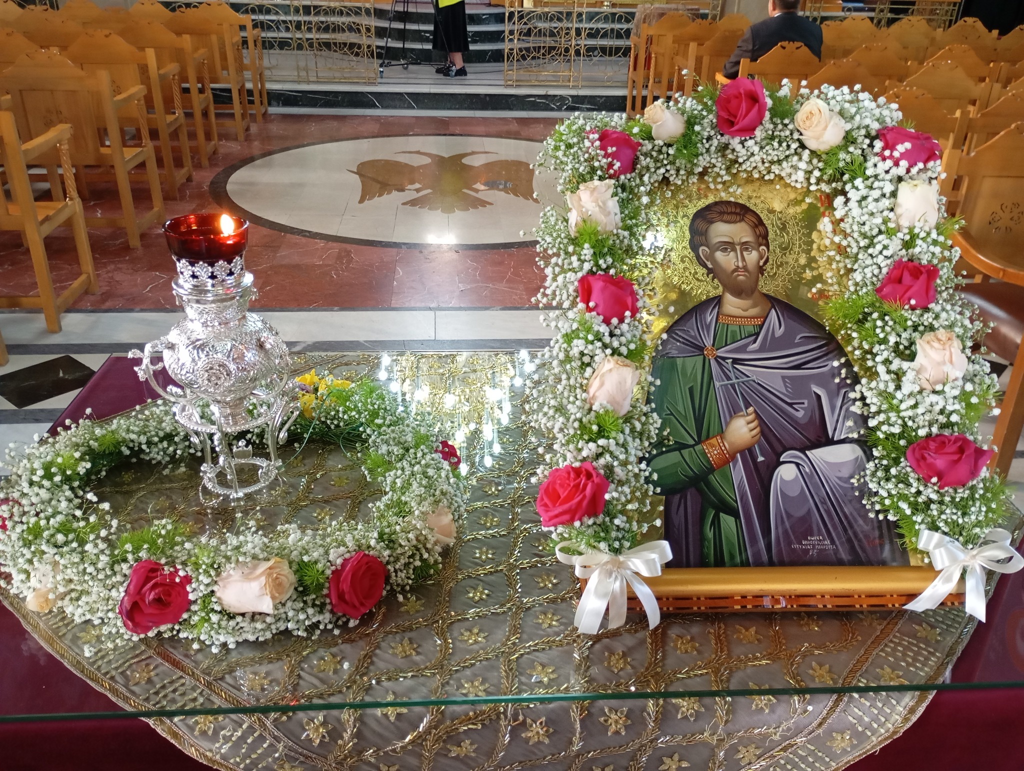 Όπως κατέγραψε το trikalavoice.gr το απόγευμα της Παρασκευής έγινε δεκτή η Τιμία Κάρα του Αγίου εκ της Ιεράς Μονής Βαρλαάμ όπου φυλάσσεται και ακολούθησε Εσπερινός και Λιτανεία. Το πρωί του Σαββάτου, κυριώνυμο ημέρα της εορτής, τελέστηκε Αρχιερατιικό Συλλείτουργο στον Ιερό Ναό προεξάρχοντος του Μητροπολίτου Τρίκκης Χρυσοστόμου και συλλειτουργούντος του Επισκόπου Αλμωπίας Στεφάνου.
