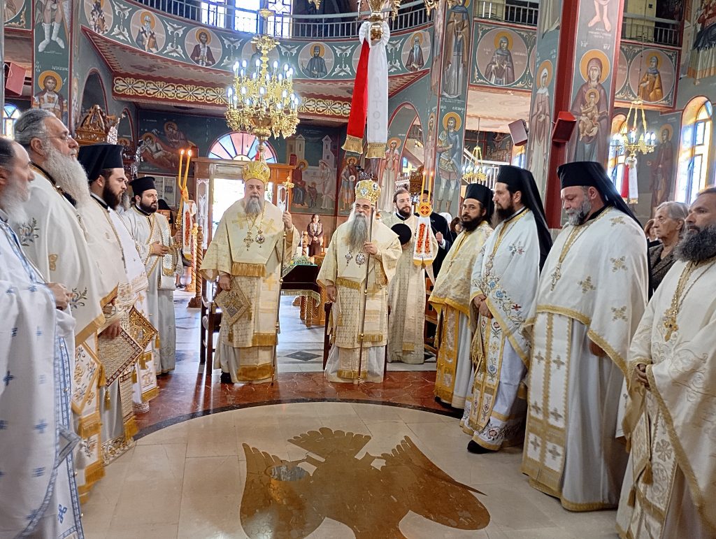 Όπως κατέγραψε το trikalavoice.gr το απόγευμα της Παρασκευής έγινε δεκτή η Τιμία Κάρα του Αγίου εκ της Ιεράς Μονής Βαρλαάμ όπου φυλάσσεται και ακολούθησε Εσπερινός και Λιτανεία. Το πρωί του Σαββάτου, κυριώνυμο ημέρα της εορτής, τελέστηκε Αρχιερατιικό Συλλείτουργο στον Ιερό Ναό προεξάρχοντος του Μητροπολίτου Τρίκκης Χρυσοστόμου και συλλειτουργούντος του Επισκόπου Αλμωπίας Στεφάνου.