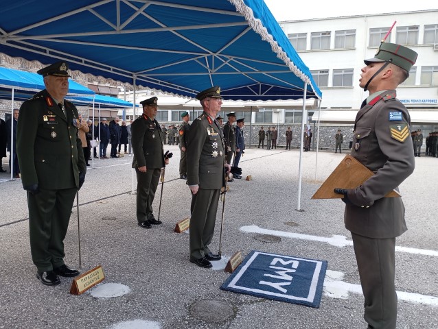 Κατά την πρέπουσα στρατιωτική τάξη πραγματοποιήθηκε το πρωί της Πέμπτης στα Τρίκαλα η τελετή παράδοσης από τον απερχόμενο Διοικητή Ταξίαρχο Γεώργιο Παπαγεωργίου, στον νέο Διοικητή της Σχολής Μονίμων Υπαξιωματικών Ταξίαρχο Γρηγόρη Γαρουφαλιά.