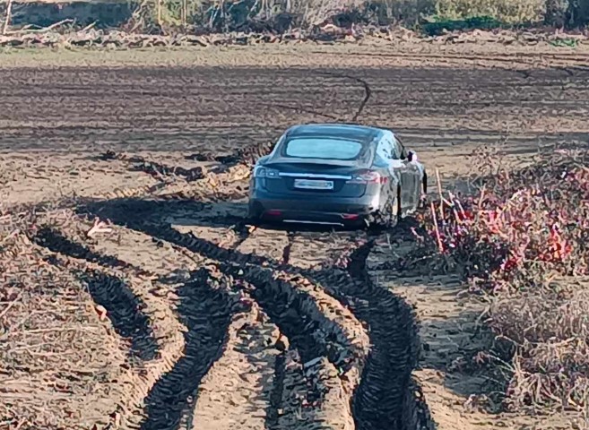 TESLA… έφυγε μέσα στα χωράφια τα ξημερώματα στα Τρίκαλα (φώτο)
