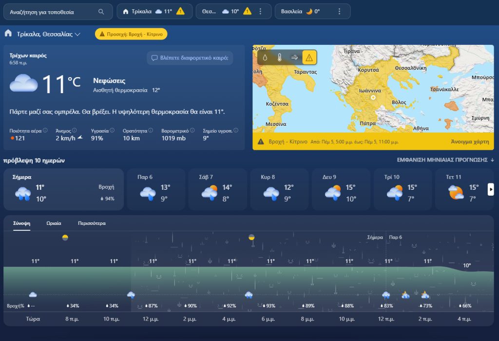 Σύμφωνα με τα στοιχεία που συλλέγει το trikalavoice.gr το σκηνικό του καιρού θα διατηρηθεί έτσι έως την Τρίτη τουλάχιστον.