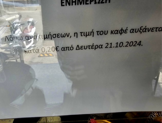 Ήδη όπως καταγράφει το trikalavoice.gr καταστηματάρχες ενημερώνουν τους πελάτες τους, σε ορισμένες περιπτώσεις και με “ανακοίνωση” στις βιτρίνες των καταστημάτων τους. Θα πούμε τον… καφέ, καφεδάκι!!!