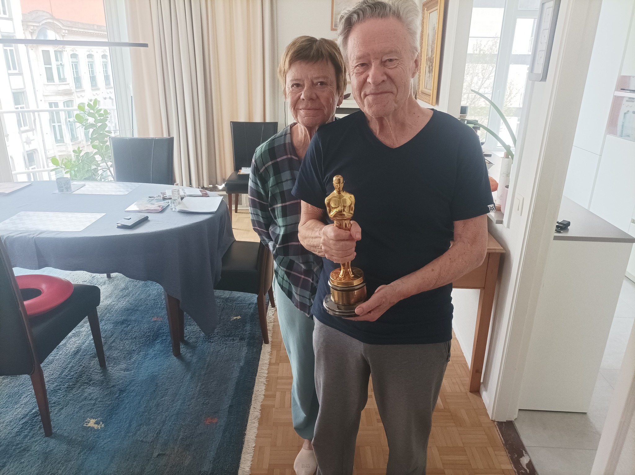 Σε ανάρτησή του αναφέρει: “Με μεγάλη χαρά κατάφερα σήμερα να κρατήσω στα χέρια μου και τρίτο Όσκαρ. Βρίσκομαι στην Αμβέρσα όπου συναντήθηκα με τον Willem Thijssen (Γουίλεμ Τάισεν), ο οποίος βραβεύθηκε το 1987 με το Όσκαρ καλύτερης ταινίας κινουμένων σχεδίων μικρού μήκους για το απολαυστικό φιλμάκι της Nicole Van Goethem “A Greek Tragedy” που δείχνει τον αγώνα τριών Καρυάτιδων να στηρίξουν ένα υπό κατάρρευση αρχαίο μνημείο μέσα από σειρά αστείων αντιξοοτήτων. Στην τελετή των βραβείων εκείνη τη χρονιά, το Όσκαρ παρέδωσε στον Willem Thijssen (και τη συμπαραγωγό Linda Van Tulden) ο αγαπητός και πολυβραβευμένος ηθοποιός αλλά και δηλωμένος φιλέλληνας Τομ Χανκς! Ευχαριστώ θερμά τον κ. Τάισεν και τη σύζυγό του που με δέχθηκαν στο σπίτι τους με ειλικρινή καλοσύνη και ευγένεια”!