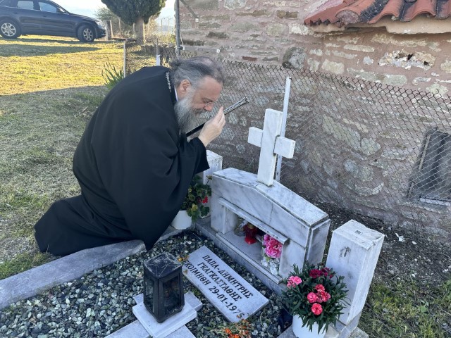 «Είναι μεγάλη ευλογία που βρίσκεστε σήμερα εδώ, εσείς οι μεγαλύτεροι σε ηλικία. Ο παπα-Δημήτρης σας βάπτισε, σας στεφάνωσε, σας εξομολόγησε, σας κοινώνησε· στάθηκε δίπλα σας σαν αναμμένη λαμπάδα σε κάθε στάδιο της ζωής σας». Μετά το πέρας της ακολουθίας, ο Σεβασμιώτατος προσκύνησε τον τάφο του μακαριστού π. Δημητρίου, που βρίσκεται πίσω από το Ιερό Βήμα του ναού των Ταξιαρχών.