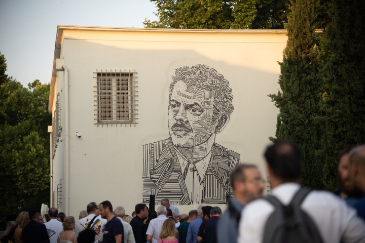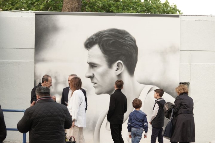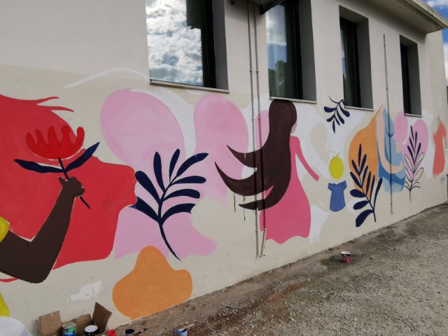 Στον τοίχο του Κέντρου, ο καλλιτέχνης Αλέξανδρος Κισκίνης ολοκλήρωνε γκραφίτι με αισιόδοξα μηνύματα.
