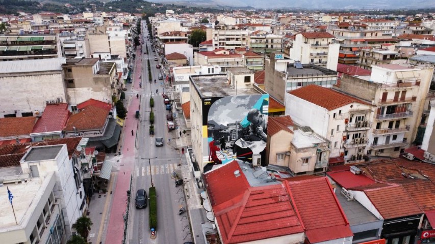 Ακόμη ένας (δύο, για την ακρίβεια) λευκοί τοίχοι κτισμάτων χρωματίστηκαν στα Τρίκαλα στις 12 Δεκεμβρίου 2023. Ο «Παρατηρητής» στη γωνία των οδών Ασκληπιού και Καποδιστρίου, το τρίτο κατά σειρά γκράφιτι που αλλάζει την όψη της πόλης, δίνοντας χρώμα και στιγμές της ζωής.
