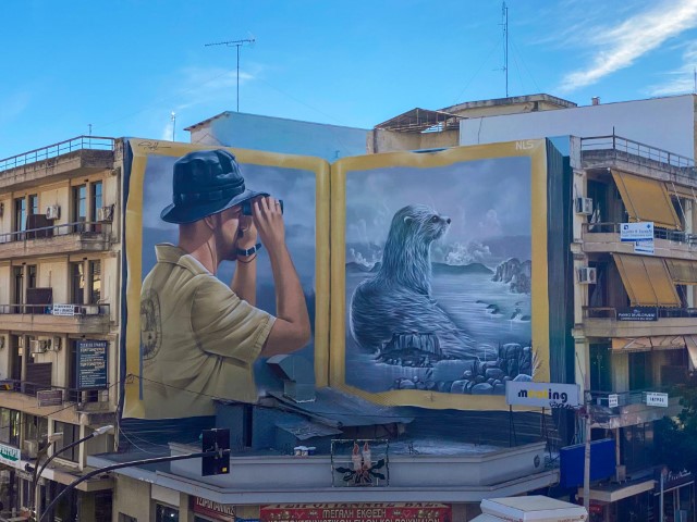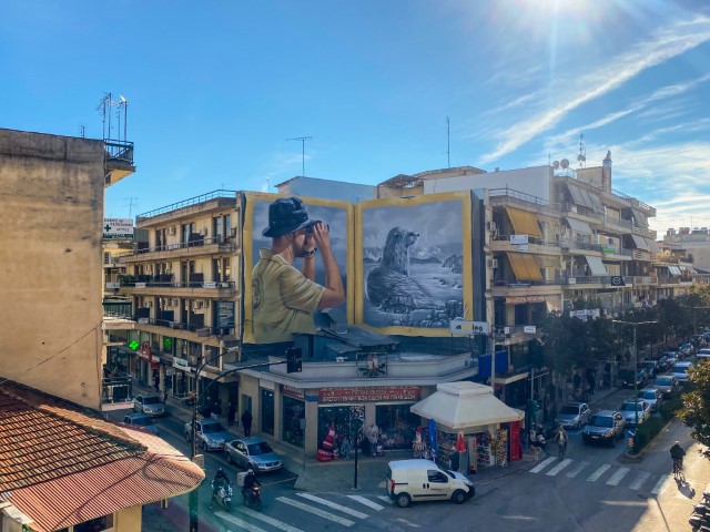 Ακόμη ένας (δύο, για την ακρίβεια) λευκοί τοίχοι κτισμάτων χρωματίστηκαν στα Τρίκαλα στις 12 Δεκεμβρίου 2023. Ο «Παρατηρητής» στη γωνία των οδών Ασκληπιού και Καποδιστρίου, το τρίτο κατά σειρά γκράφιτι που αλλάζει την όψη της πόλης, δίνοντας χρώμα και στιγμές της ζωής.