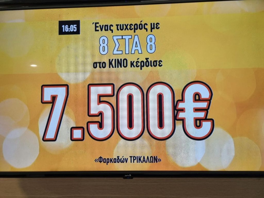 Το δελτίο κατέγραψε 8 στις 8 σωστές προβλέψεις και αυτό είχε ως αποτέλεσμα ο τυχερός να κερδίζει 7,500ευρώ.