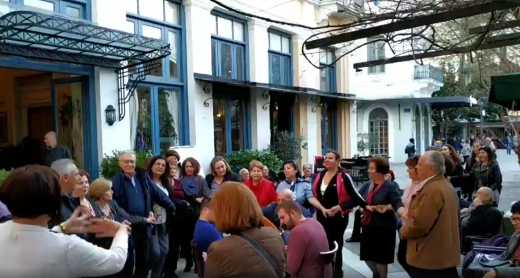 Περνώντας το τριήμερο της Αποκριάς στα Τρίκαλα, φιλοξενούμενοι του Ξενοδοχείου «Πανελλήνιον» τα μέλη του Συλλόγου Καρπαθίων Αθήνας έστησαν παραδοσιακό χορό και γλέντι, το μεσημέρι της Κυριακής, μπροστά το ξενοδοχείο.