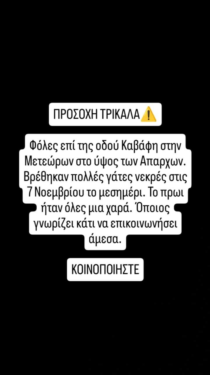 Νεκρές γάτες βρέθηκαν σύμφωνα με τους Dog Defenders το μεσημέρι της Πέμπτης πίσω από τις “Απαρχές”.