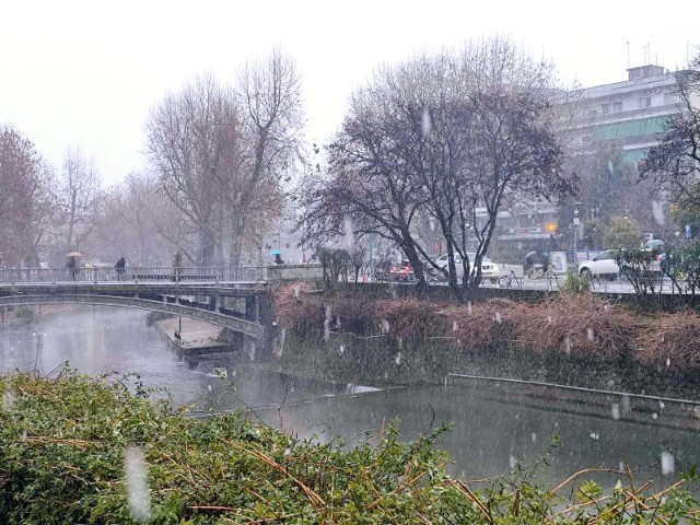 Ξεκίνησε λίγο μετά τις 8 το πρωί η χιονόπτωση και μέσα στην πόλη των Τρικάλων.