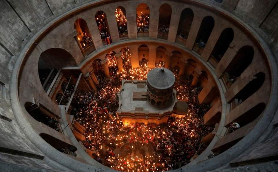 Σε κλίμα κατάνυξης και λαμπρότητας, τελέστηκε στον κατάμεστο Ιερό Ναό της Αναστάσεως στα Ιεροσόλυμα η ιερουργία της Αφής του Αγίου Φωτός.