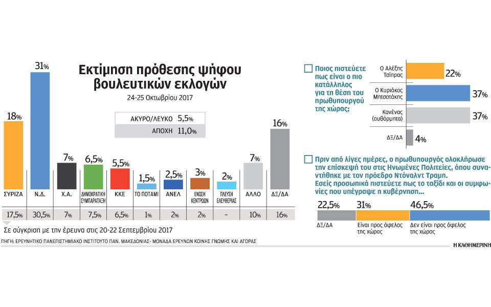 Σταθερό προβάδισμα της Νέας Δημοκρατίας έναντι του ΣΥΡΙΖΑ στην πρόθεση ψήφου