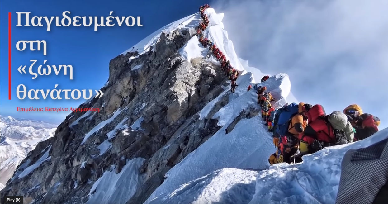Η φωτογραφία αυτή που δείχνει μία τεράστια ουρά ορειβατών στην κορυφογραμμή του Έβερεστ, τραβήχτηκε στις 22 Μαΐου,