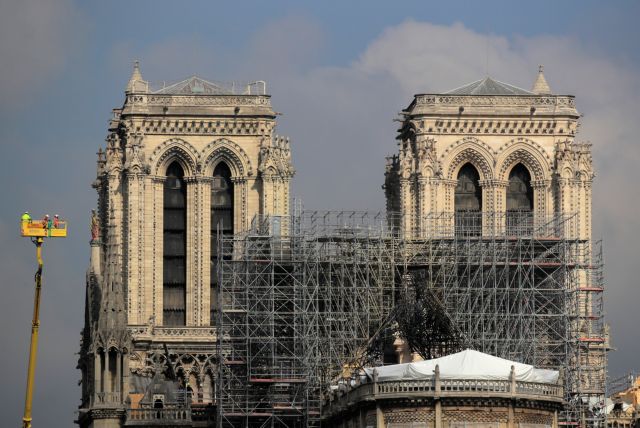 Τα πανοραμικά πλάνα, βιντεοσκοπημένα από drone, μεταδόθηκαν από την περιφέρεια του Παρισιού και αποκαλύπτουν τον προσωρινό μουσαμά που έχει τοποθετηθεί στην...
