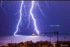 Ένα μοναδικό φωτογραφικό καρέ κεραυνού απαθανατίστηκε το βράδυ της Τρίτης στη Θεσσαλονίκη.