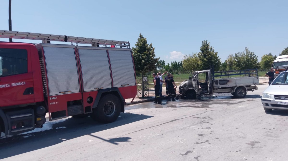 «Λαμπάδιασε» φορτηγάκι, το οποίο κινούνταν το μεσημέρι της Παρασκευής στη συμβολή των οδών Ιωάννη Λάτσιου και Σαρίμβεη, στη Λάρισα.