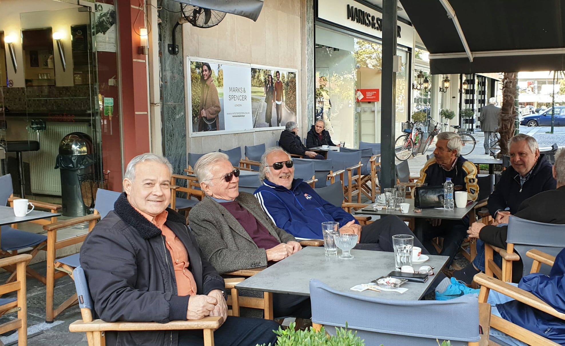 Στον ήλιο του φθινοπωρινού μεσημεριού βρίσκονται να πολιτικολογούν, στην αρχή του πεζόδρομου της Ασκληπιού εμβληματικές προσωπικότητες της τοπικής πολιτικής...