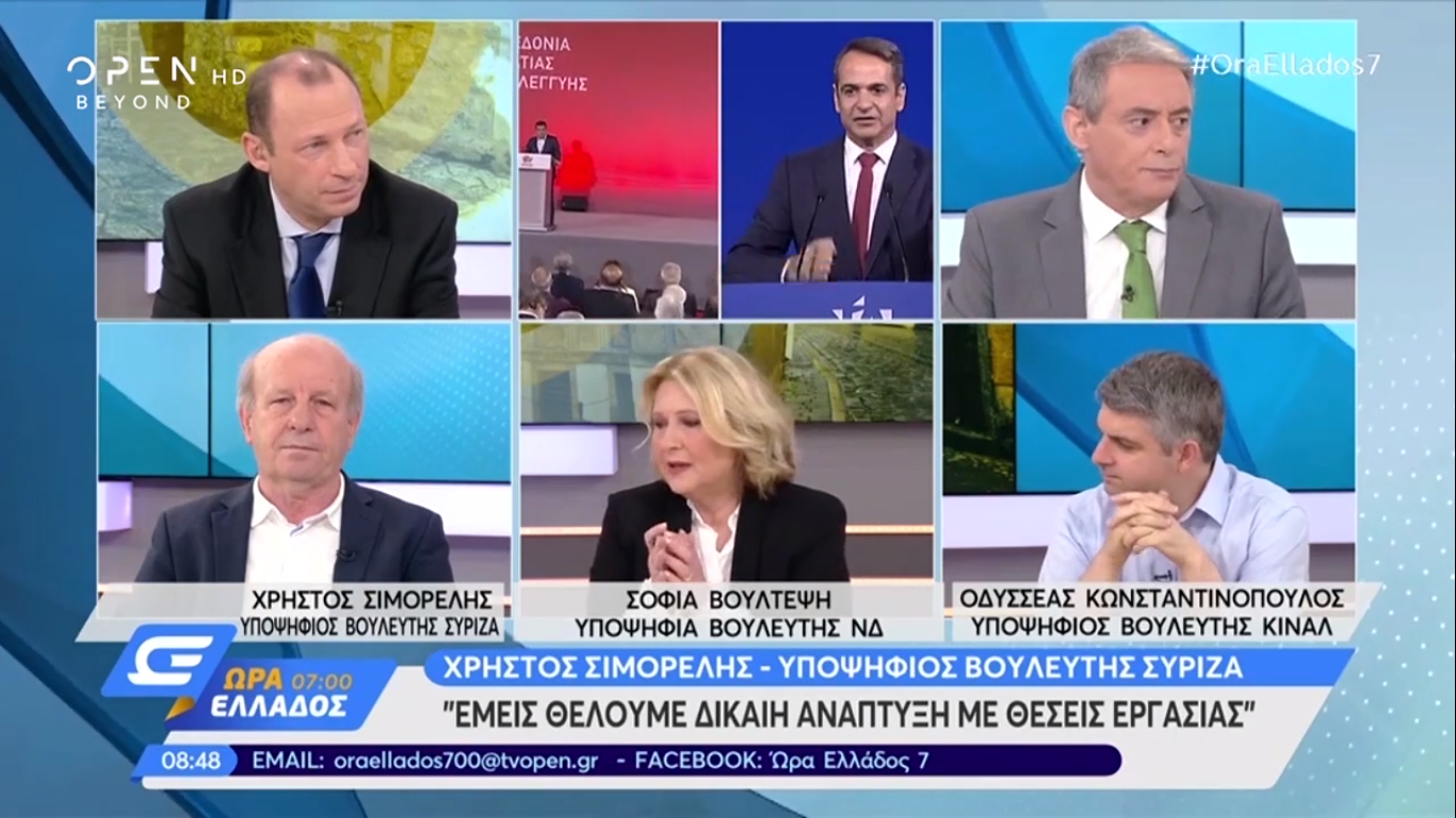 Σε πολιτική συζήτηση στο OPEN TV, στην εκπομπή «Ώρα Ελλάδος 7.00» με τους Ι. Χασαπόπουλο και Γ. Σαραντάκο,