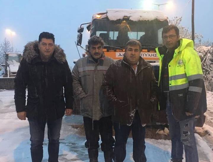 Στο αμαξοστάσιο του Δήμου Πύλης με το πρώτο φως της ημέρας ο δήμαρχος Κώστας Μαράβας.