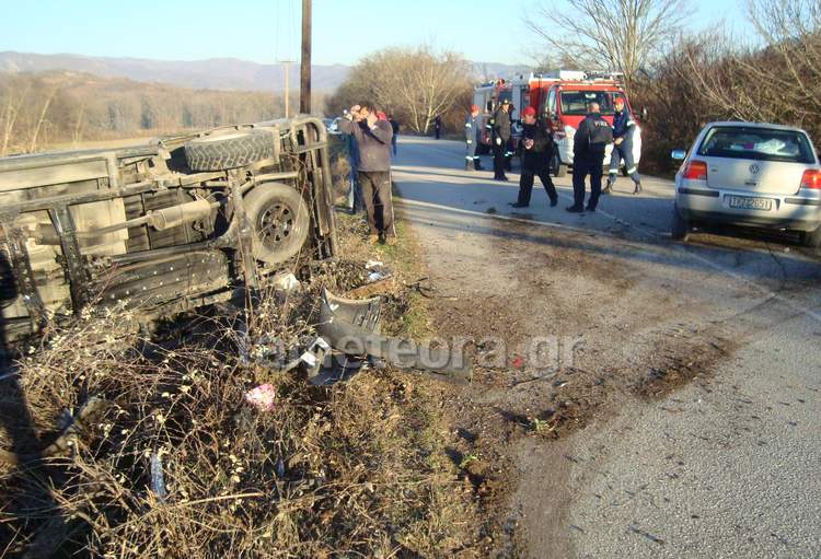 Σφοδρή μετωπική σύγκρουση Ι.Χ. φορτηγού αυτοκινήτου με Ι.Χ. επιβατικό σημειώθηκε στις 4.30 μ.μ. στο 6ο χλμ., της Επαρχιακής Οδού Διάβας-Αμπελίων.