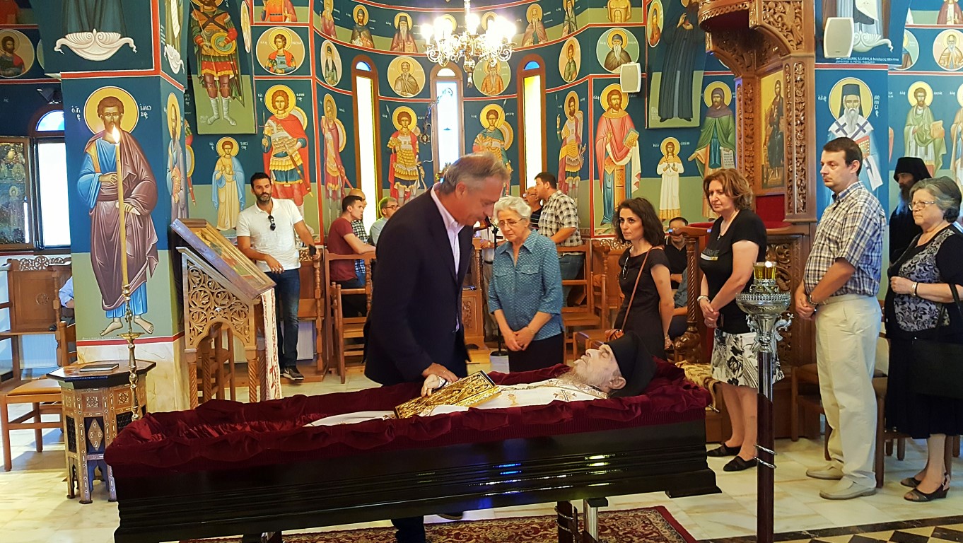 Πλήθος πιστών προσέρχεται από νωρίς το απόγευμα της Τετάρτης στην Ιερά Μονή Αγίων Θεοδώρων προκειμένου να αποχαιρετήσει τον γέροντα Γεώργιο.