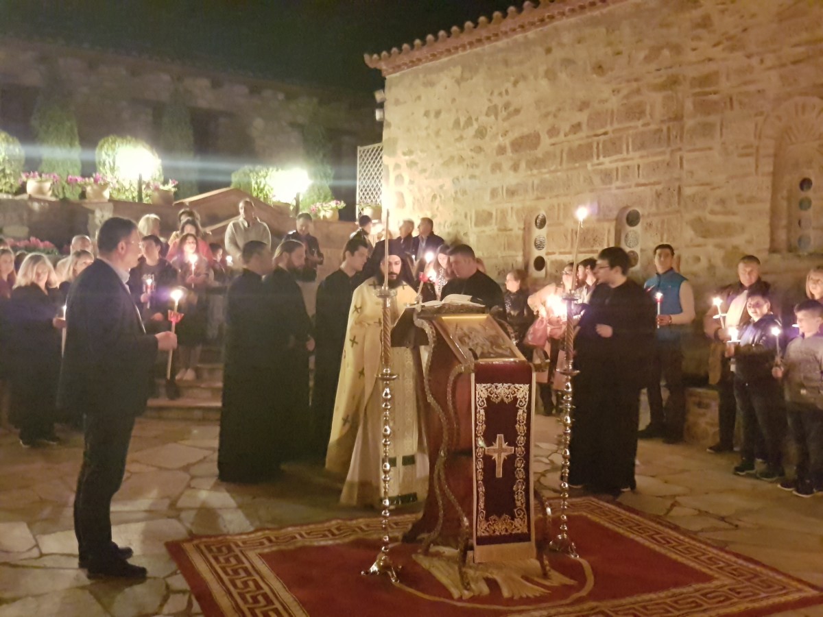 Με θρησκευτική κατάνυξη παρακολούθησαν οι πιστοί, το βράδυ του Μεγάλου Σαββάτου, την λειτουργία της Αναστάσεως στο μεγάλο Μετέωρο.