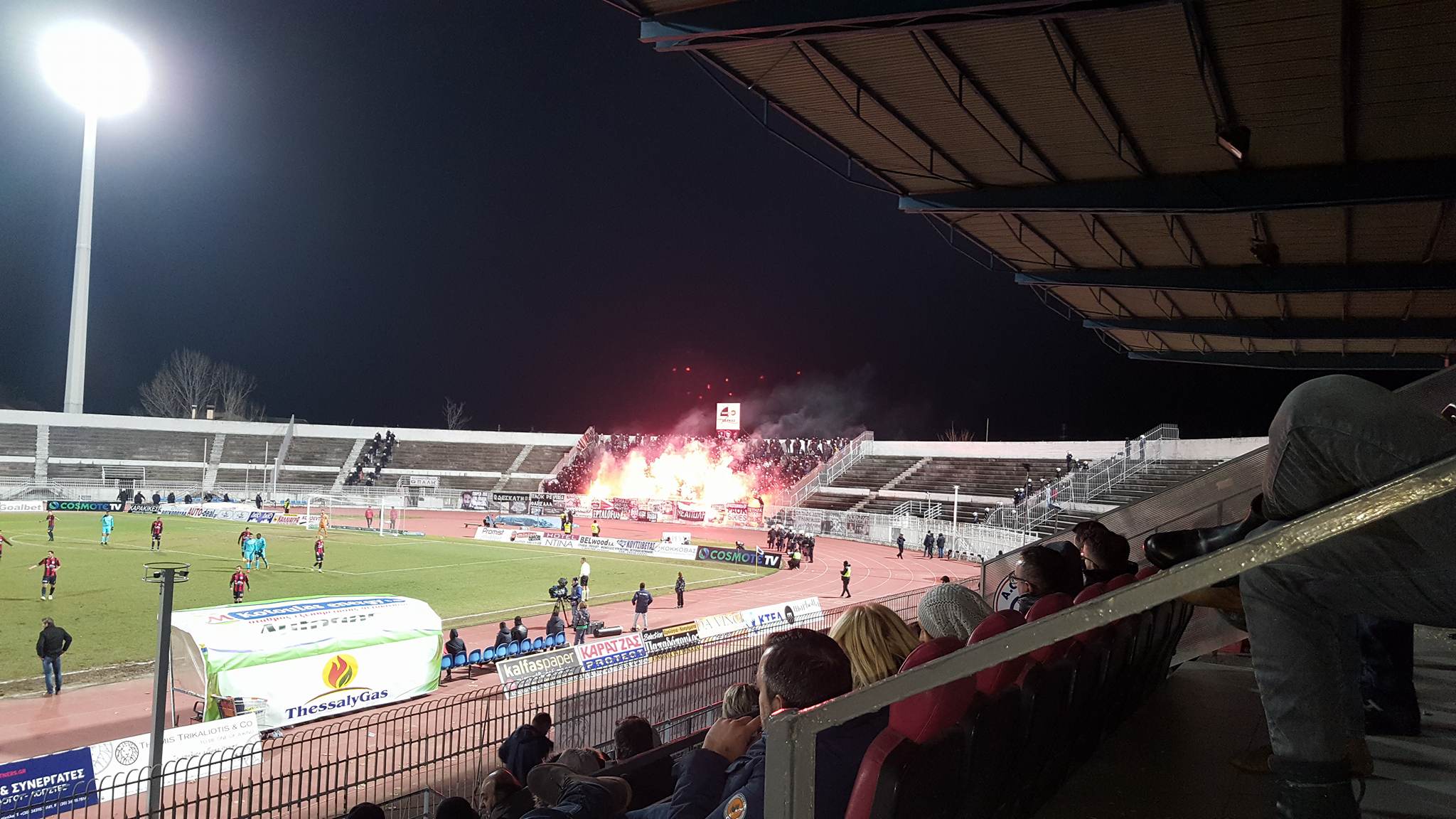Παρά τα μέτρα ασφαλείας οι οπαδοί του ΠΑΟΚ βρήκαν τρόπο να περάσουν βεγγαλικά στο Δημοτικό Στάδιο το απόγευμα της Τρίτης, στο ματς με τον ΑΟΤ.