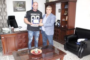 Εθιμοτυπική επίσκεψη στο γραφείο του στο Δημαρχείο Πύλης είχε ο Δήμαρχος κος Κωνσταντίνος Μαράβας, με τον Πρωταθλητή Ελλάδος κο Αθανάσιο Καραμάνο.
