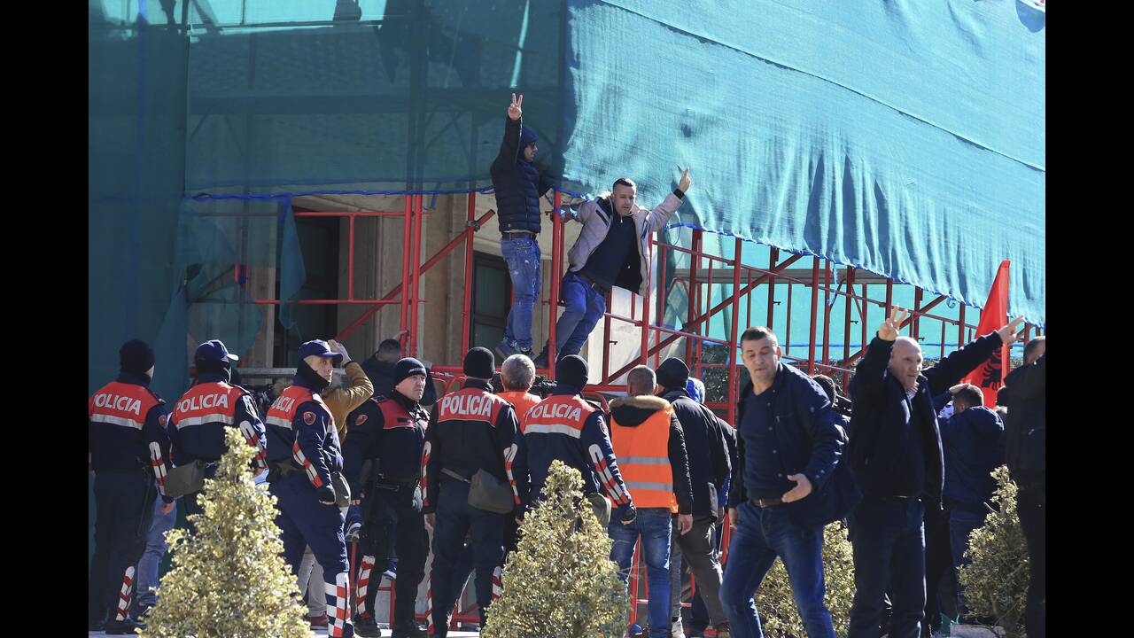 Χιλιάδες άνθρωποι διαδηλώνουν σε τεταμένη ατμόσφαιρα μπροστά από το κτήριο της αλβανικής κυβέρνησης στα Τίρανα