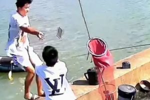 Από τις γνωστές χαζομάρες των πιτσιρικάδων στις εκδρομές που σπρώχνουν στο νερό μέλος της παρέας…