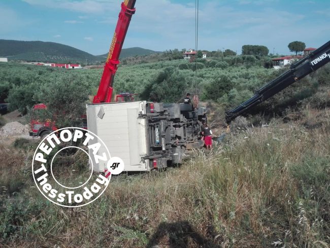Από θαύμα σώθηκε οδηγός νταλίκας που έπεσε σε χαράδρα στο Τρίκορφο Γερακινής, στη Χαλκιδική.