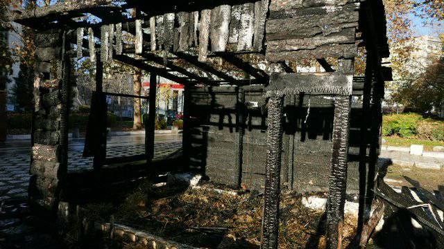 Θλιβερή είναι η εικόνα της καμένης φάτνης δίπλα από το μεγάλο χριστουγεννιάτικο δέντρο