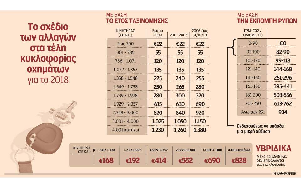 Την αναδιάρθρωση των κλιμακίων κυβικών εκατοστών των τελών κυκλοφορίας εξετάζει