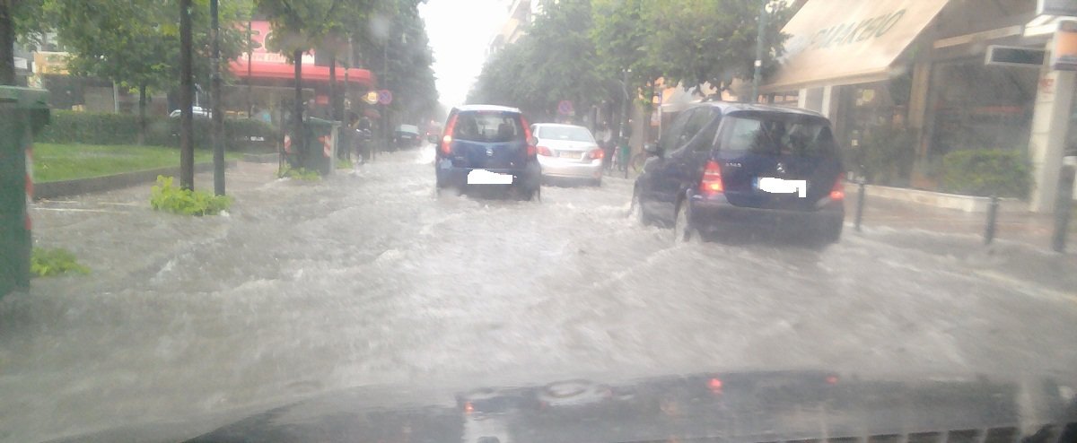 Τεράστιους όγκους νερού δέχθηκαν οι κεντρικοί δρόμοι της Λάρισας κατά τη διάρκεια