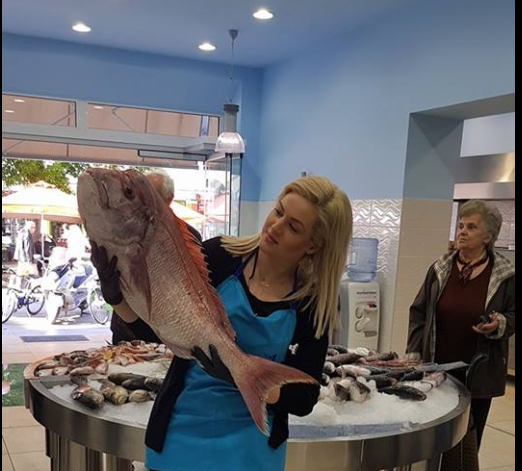 Με ολόφρεσκο ψάρι αρκετών… κιλών στην αγκαλιά της, διακρίνεται η Νατάσα Τσιονάρα,
