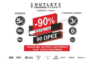 -90% ΓΙΑ 90 ώρες στο OUTLET KARAKIKES (!)ΓΑΡΙΒΑΛΔΗ 3 Τρίκαλα αρχίζουμε ΔΕΥΤΕΡΑ 9/ΣΕΠΤΕΜΒΡΙΟΥ 10-20:00 !! ΑΝΔΡΙΚΑ-ΓΥΝΑΙΚΕΙΑ-ΠΑΙΔΙΚΑ -90% 5€-10€ -15€ (!)Τα...