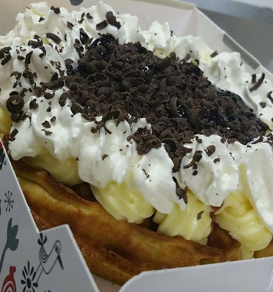 Αλλη μια βάφλα #BlackForest ετοιμη για delivery.. φρέσκια κρέμα πατισερί, βύσσινο, σαντιγύ και τριμμένη σοκολάτα είναι καθοδόν…