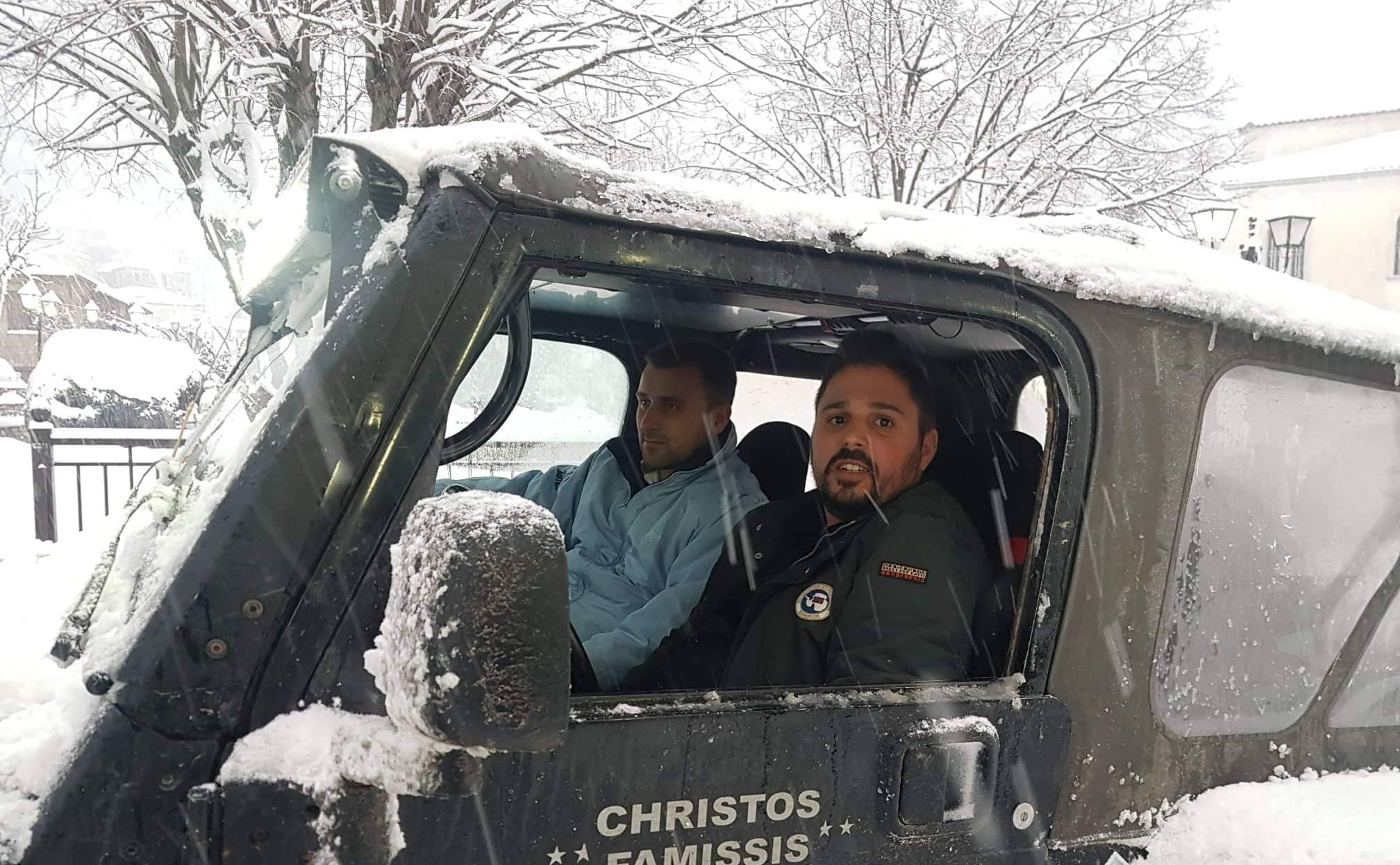 Ice men… Το μέλλον δεν μπορεί να περιμένει στην αγία πόλη των Σταγών. Λευτέρης Αβραμόπουλος-Σωτήρης Φαμίσης καθαρίζουν δρόμους, απεγκλωβίζουν νιές και κόρες...