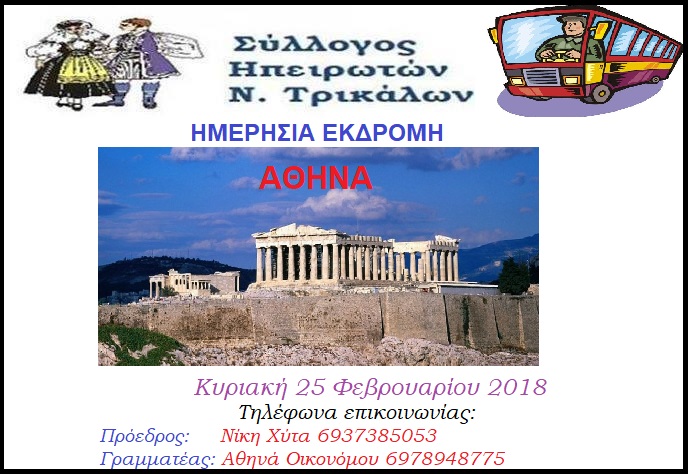 Ημερήσια εκδρομή Κυριακή 25 Φεβρουαρίου 2018 στην Αθήνα