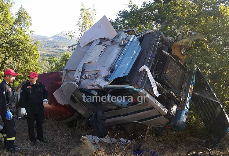 Τροχαίο ατύχημα με εκτροπή βυτιοφόρου σε στροφή στην Εθνική Οδό Τρικάλων – Ιωαννίνων, δύο χιλιόμετρα μετά τη γέφυρα Μουργκανίου σημειώθηκε λίγο μετά τις 9.30.