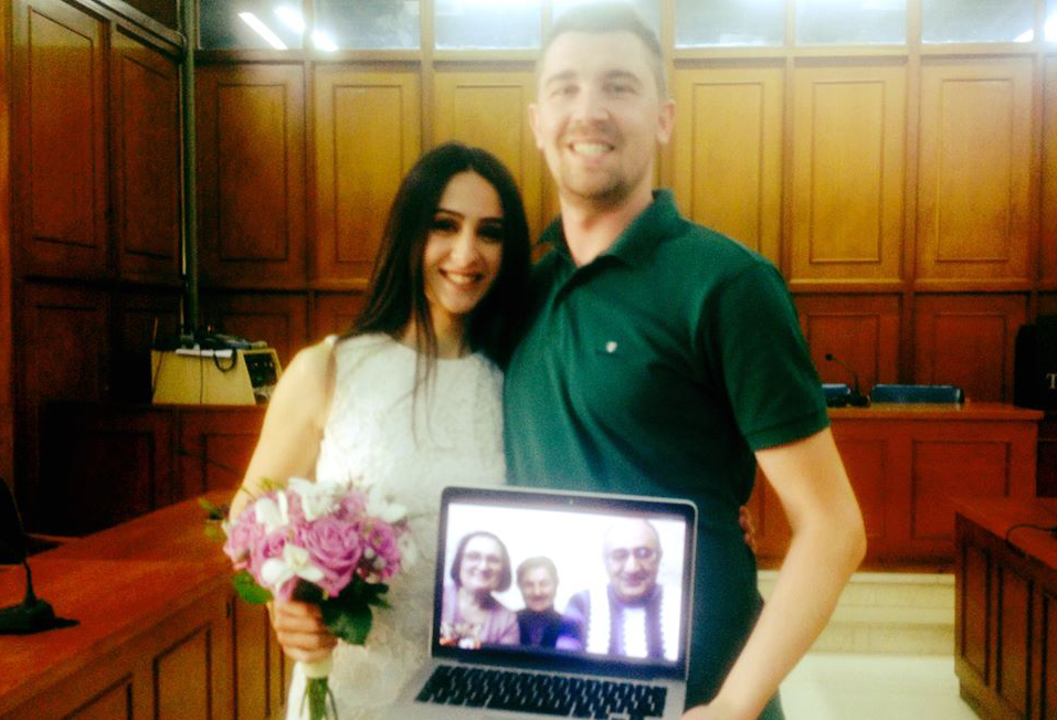 Αποστόλης Βλαχοκώστας και Asia Adamian ενώθηκαν με τα δεσμά του γάμου, ο οποίος μεταδόθηκε… live στους γονείς της νύφης, οι οποίοι ζουν στην Αρμενία...