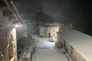 Στα λευκά ντύθηκε και απόψε η Μονή Παναγίας Σπηλιάς.