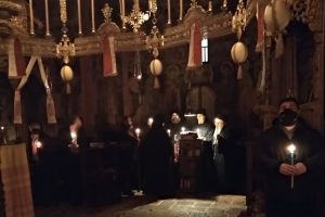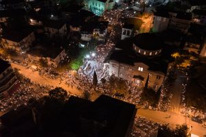 Το “Χριστός Ανέστη” φώτισε το σκότος και δόνησε την ατμόσφαιρα στη σιγαλιά των Αγίων Μετεώρων τα μεσάνυχτα του Μεγάλου Σαββάτου.