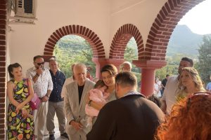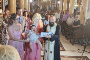Στο γραφικό εκκλησάκι της Παναγίας στο Βαλτινό ο Άρης και η Βούλα Τζιαχρήστου βάφτισαν τον μικρό τους γιο.