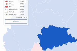 Με καταμετρημένο το 92.96% των εκλογικών τμημάτων η Ν.Δ. εξασφαλίζει 1 έδρα στα Τρίκαλα, ωστόσο θεωρείται βέβαιο πως θα τις αυξήσει πολύ στις επαναληπτικές...