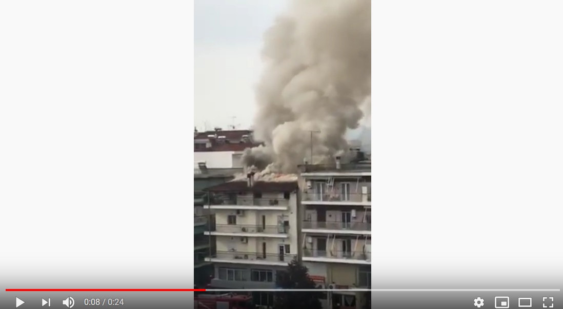 Στις φλόγες παραδόθηκε διαμέρισμα τελευταίου ορόφου στο ύψος της πλατείας Λαναρά, το πρωί της Κυριακής του Πάσχα στα Τρίκαλα.