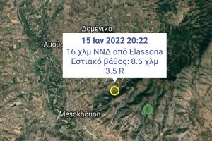 Σεισμική δόνηση σημειώθηκε πριν από λίγα λεπτά στην περιοχή μεταξύ Ελασσόνας και Τυρνάβου.